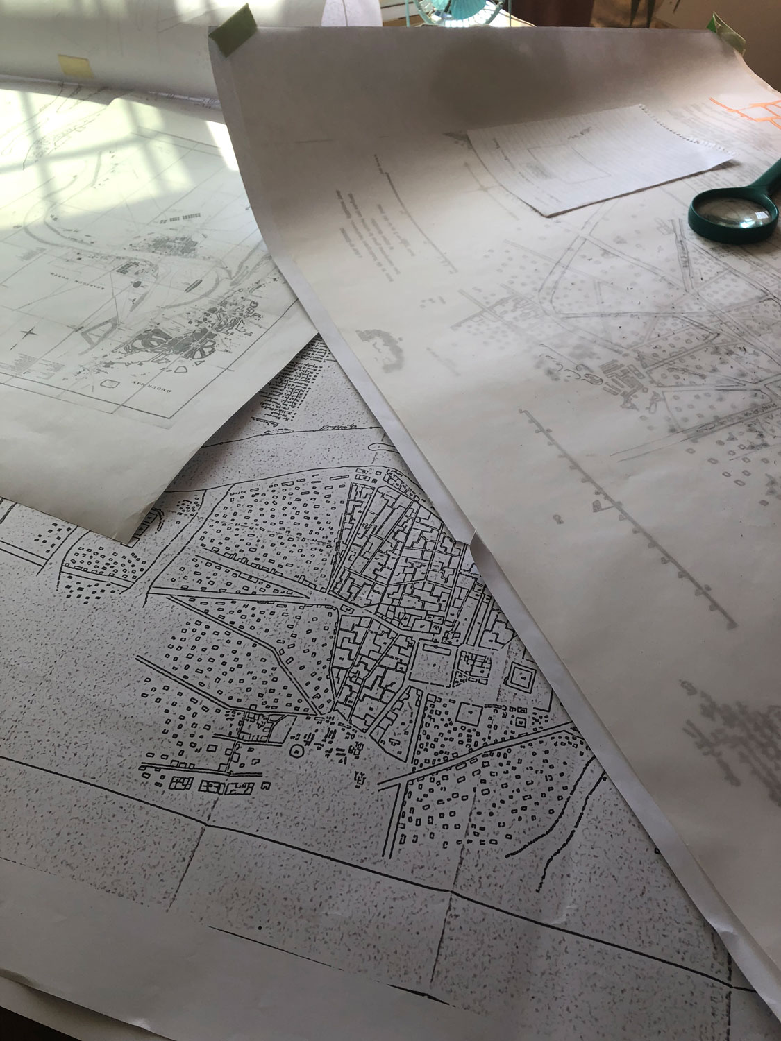 The map’s development is research based. The development phases included a historical maps review, a literature review, historical background analysis, interviews conducted, comparisons between historical pictures and visual content. This is in addition to listing locations in maps, onsite visits, and geo-referencing to ensure accuracy of drawings.